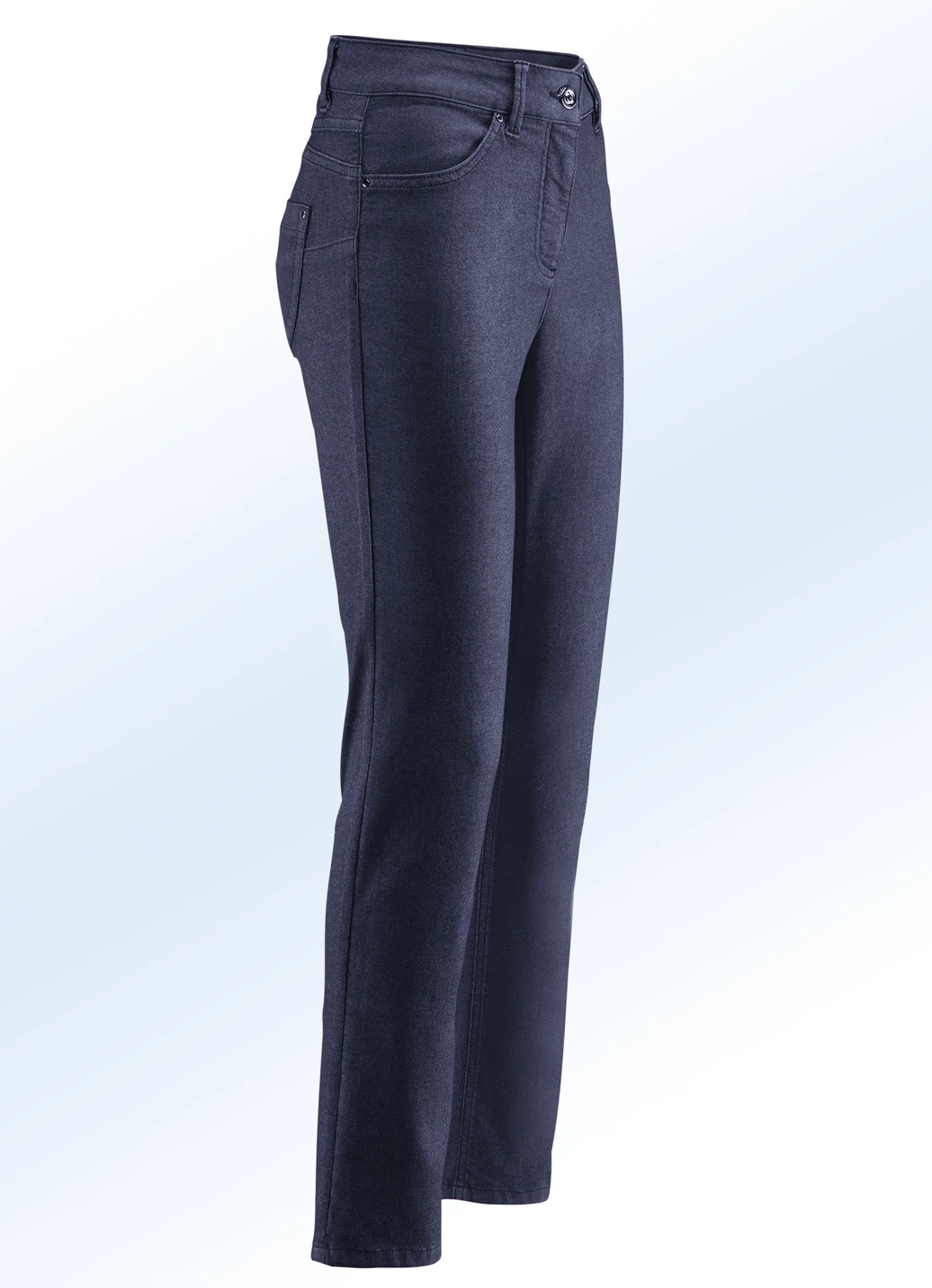 Die Qualität: hochelastischer Power-Stretch-Feingabardine, querelastisch, 67% Baumwolle, 30% Polyester und 3% Elastan