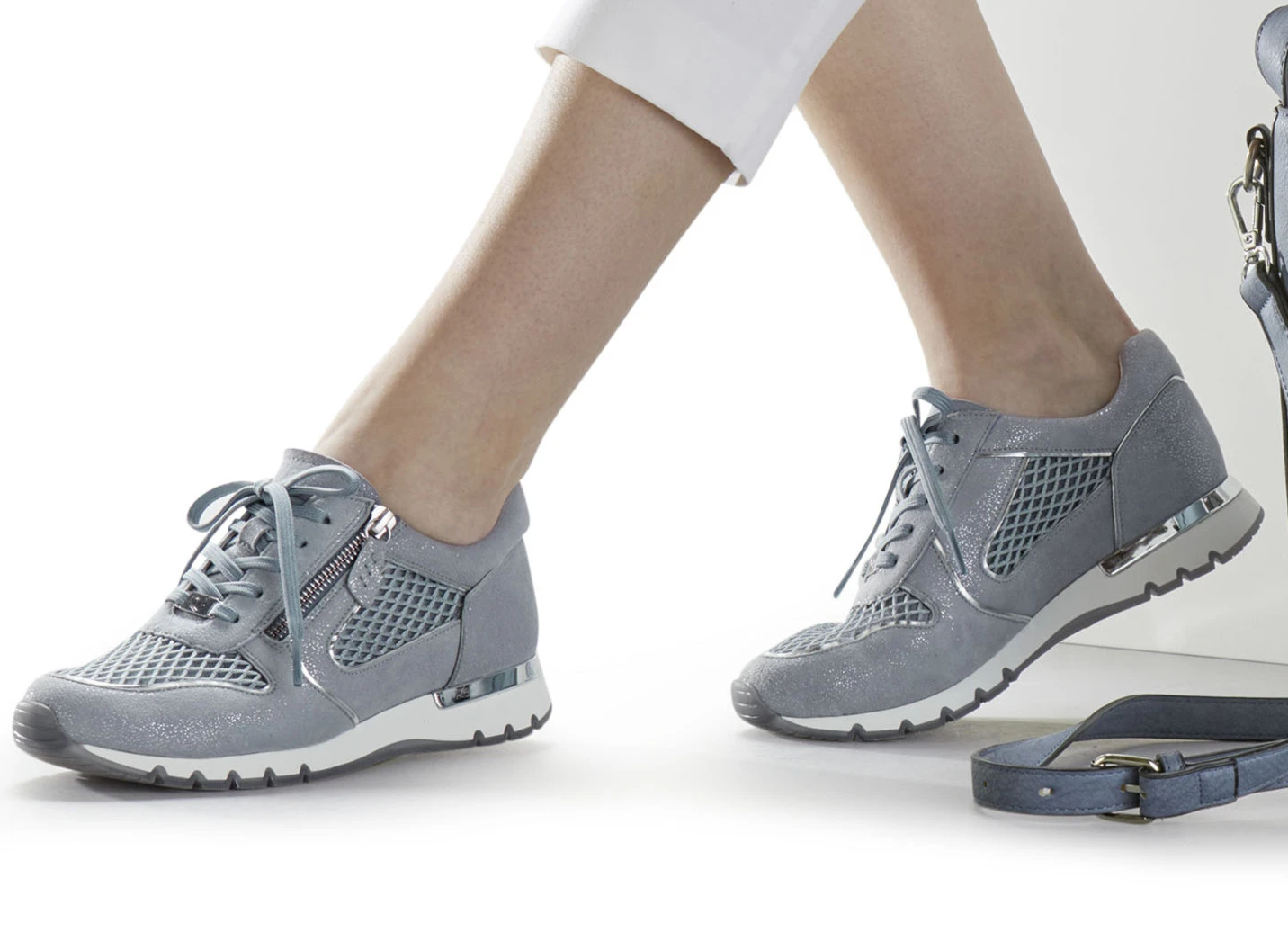 Caprice Sneaker aus glänzendem Veloursleder in Jeans und in Größe 38.