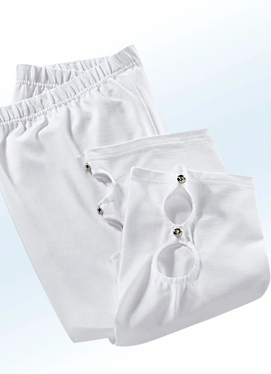 Caprihose mit silberfarbenen Zierknöpfen in Weiß und in Größe 36.