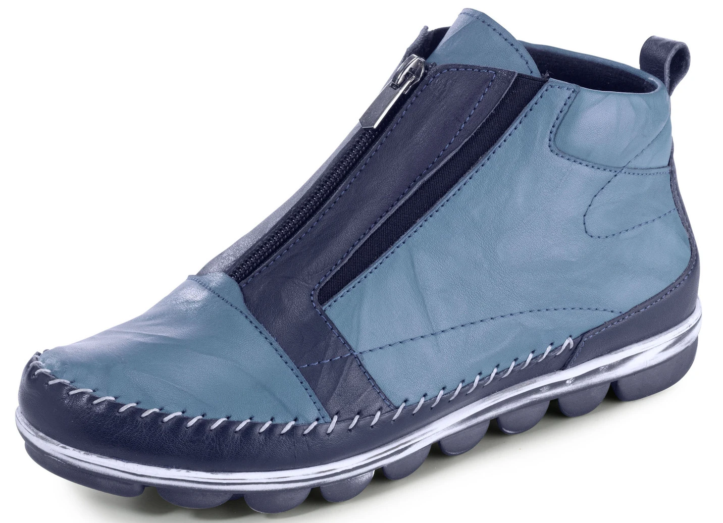 Gemini Mokassin-Bootie mit Knitter-Struktur in Blau und in Größe 42.