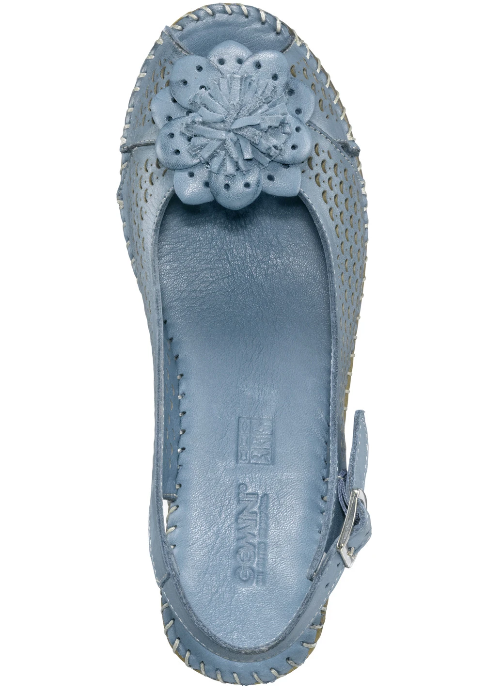 Gemini Sandalette mit Lederblüte in Jeans und in Größe 37.