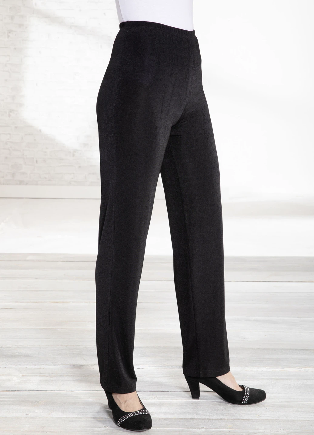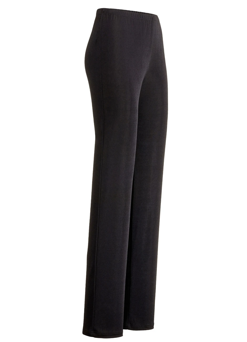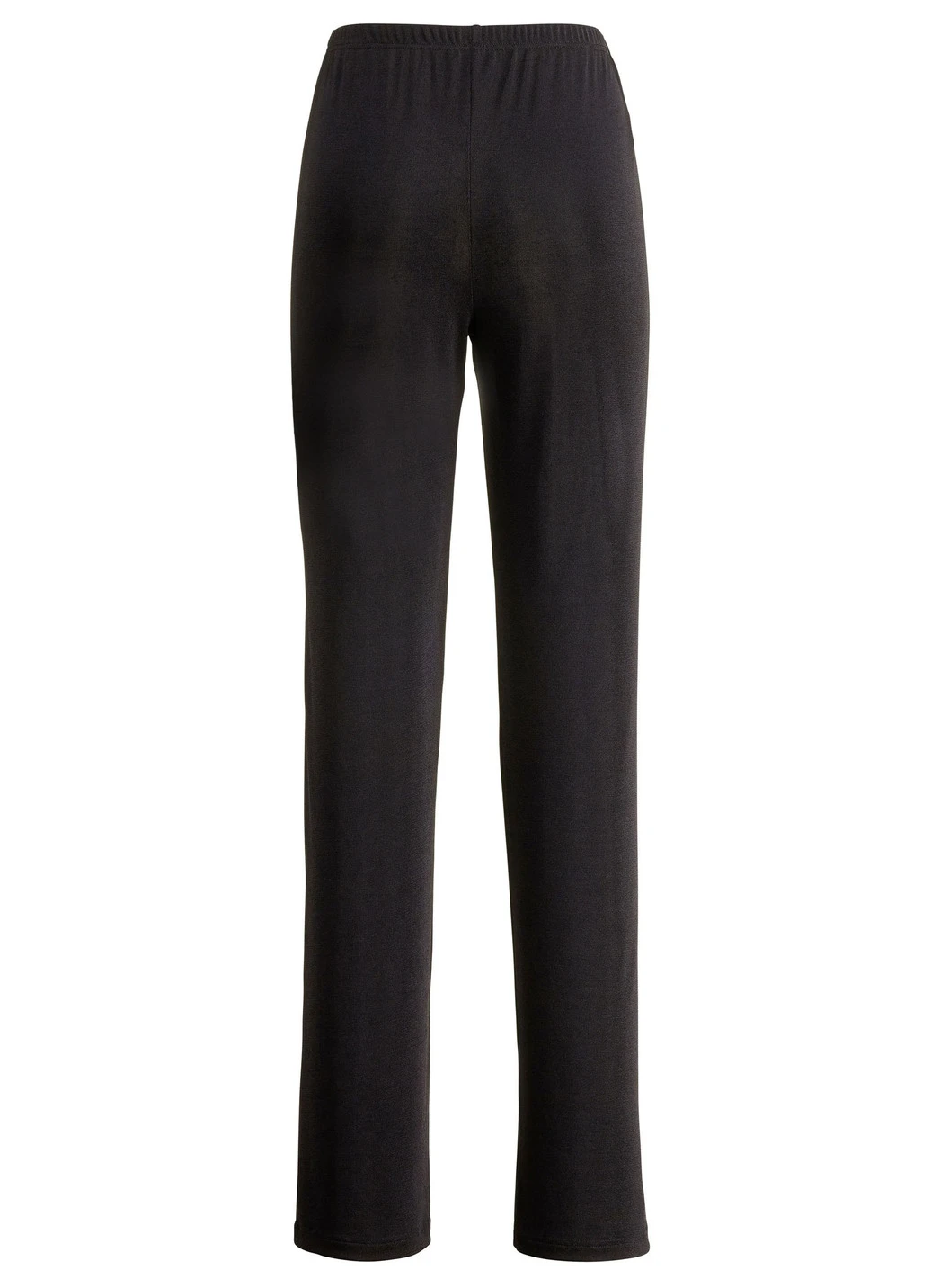 Feminine Wohlfühl-Eleganz mit edlem Glanz: schicke, bequem weite Hose in Schlupfform, mit Dehnbund rundum. Innenbeinlänge ca. 76 cm, Fußweite ab 40 cm.