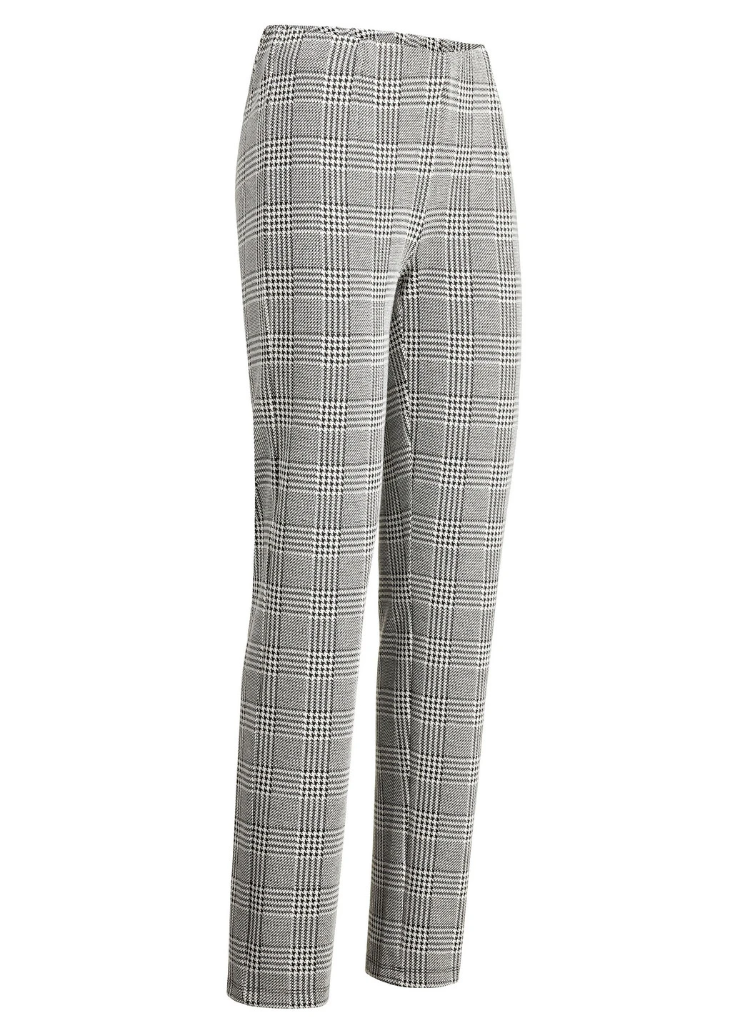 Angesagte und sehr bequeme Hose in Schlupfform mit interessanter Glencheck-Dessinierung: figurformend durch den angeschnittenen Bund, glatt anliegend dank der innenliegenden Gummibund-Einlage. Innenbeinlänge ca. 77 cm, Fußweite ab 32 cm.