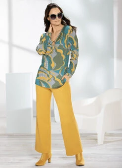 Hochelastische Jeans in bequemer Schlupfform mit super softem, formbeständigem Rundum-Dehnbund in Jersey-Qualität, angedeutete Reißverschluss-Zierblende, Ziersteppungen in Seitentaschen-Optik sowie Kleingeldtasche, funkelnde Strassziernieten, Jeanssattel sowie aufgesetzten Gesäßtaschen. Innenbeinlänge ca. 77 cm, Fußweite ab 32 cm.