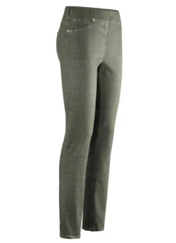 Jeans in bequemer Schlupfform in Oliv Meliert und in Größe 44.