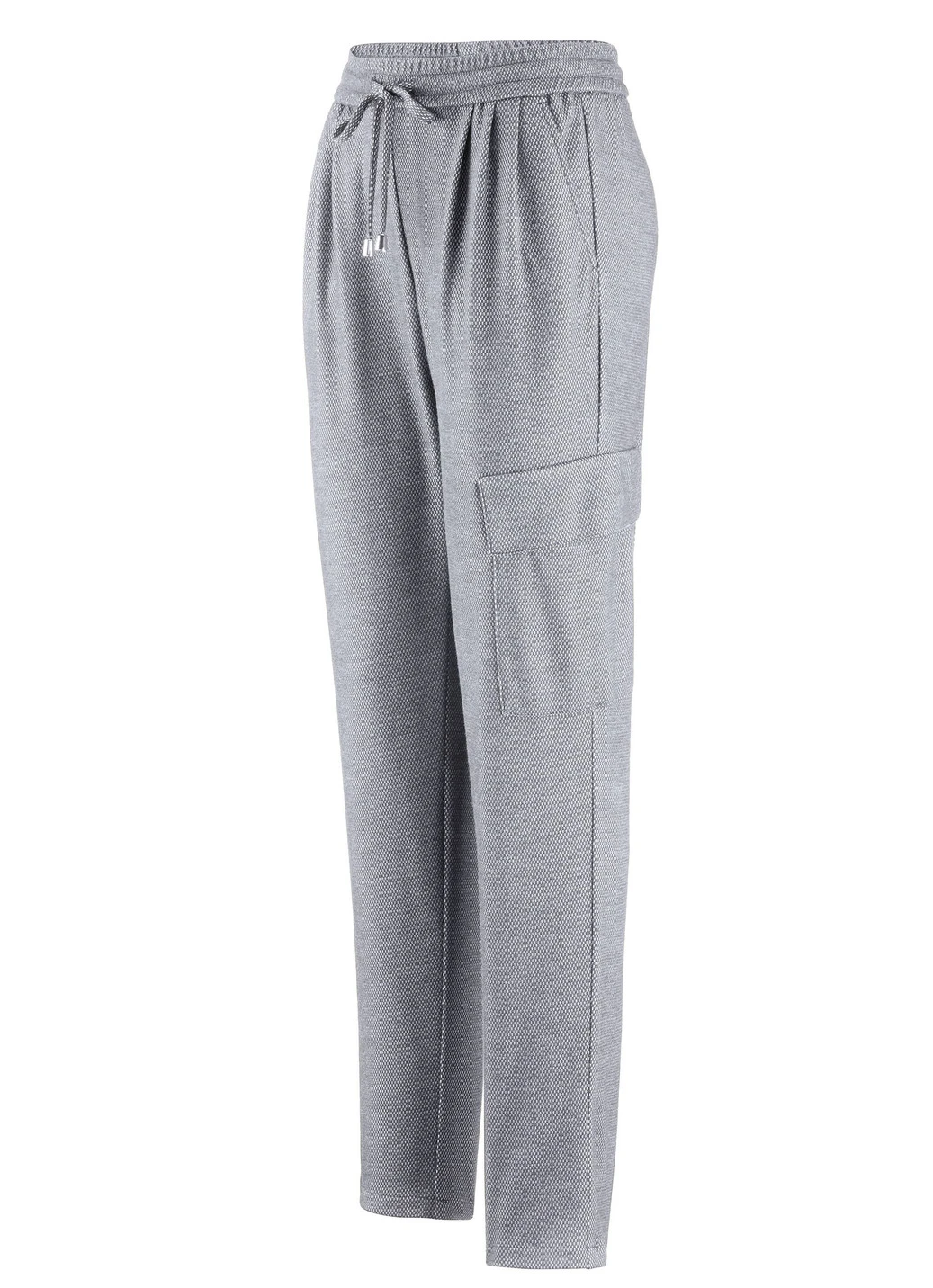 Trendgenaue, superbequeme Jerseyhose im aktuellen Joggpant-Style und angesagter Minimal-Dessinierung: in Schlupfform mit Tunnelzugbund und Bindeband zur individuellen Weitenregulierung mit silberfarbenen Stoppern, dezente Faltenlegung vorne, Seitentaschen sowie aufgesetzte Beintasche mit Patte. Innenbeinlänge ca. 77 cm, Fußweite ab 32 cm.