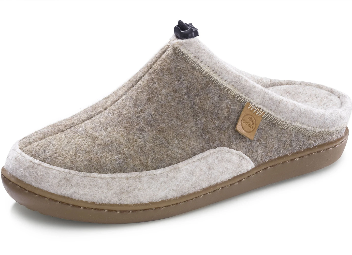 Lauruina Wollfilz-Pantoffel mit anatomisch geformten Fußbett in Taupe-Beige und in Größe 39.