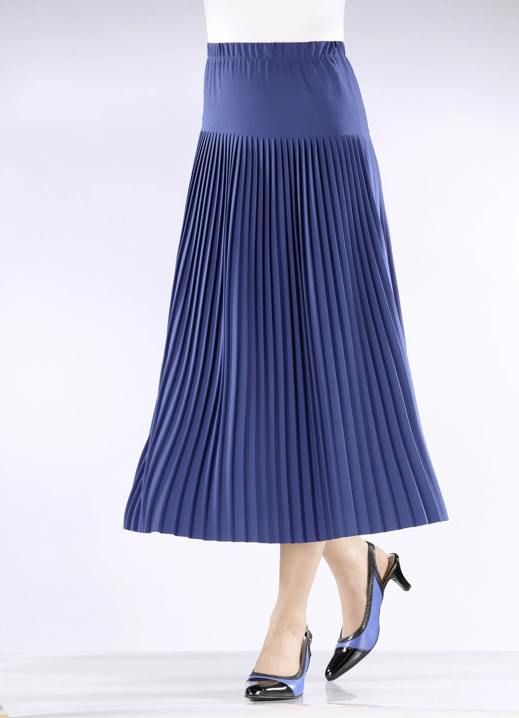 Plissee-Rock mit breiter Passe in Royalblau und in Größe 19.