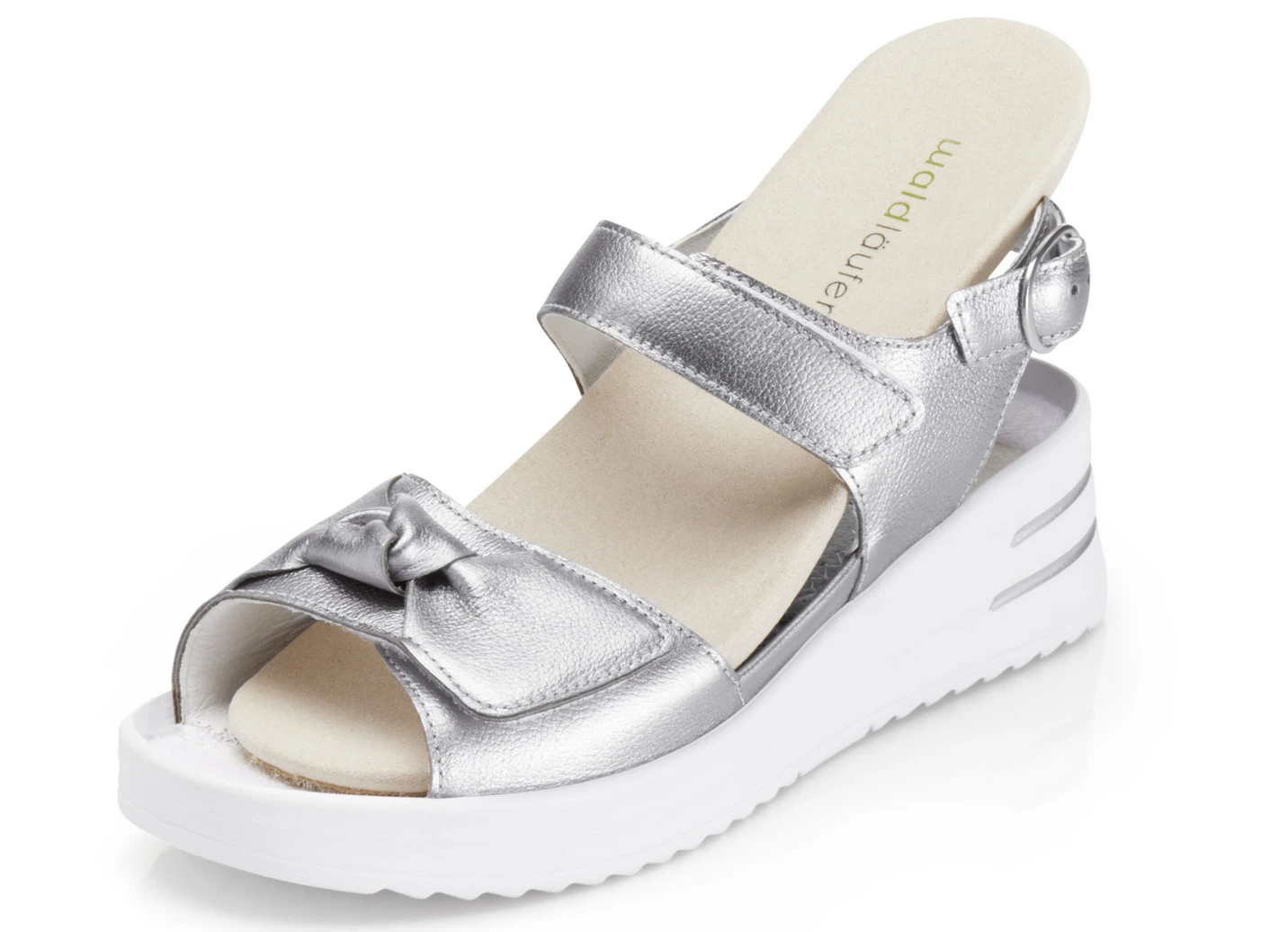 Waldläufer Sandale mit zwei praktischen Klettspangen in Schuhgröße 5 und in Altsilber.
