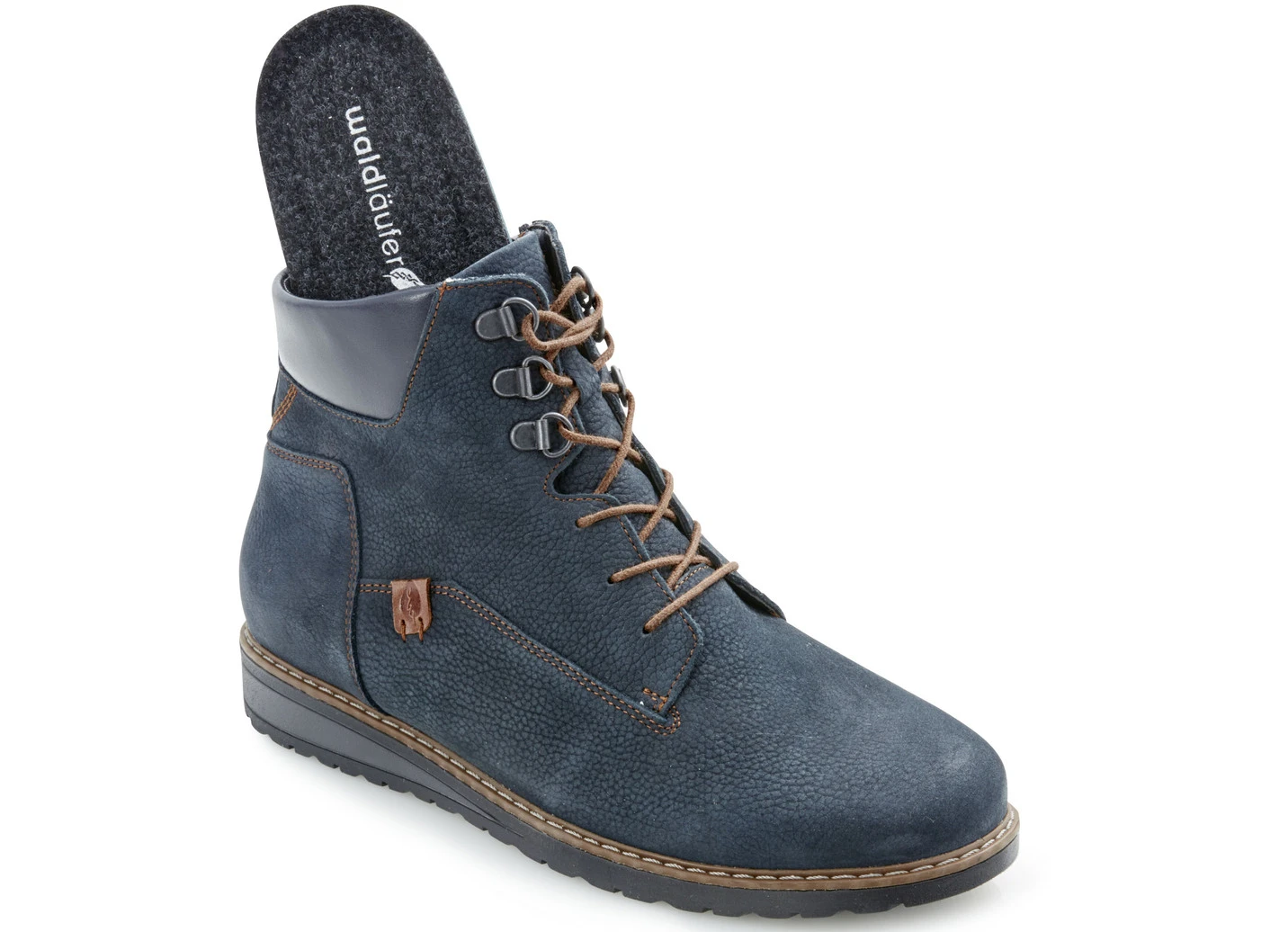 Waldläufer Schnür-Stiefelette mit Warmfutter aus reiner Baumwolle in Schuhgröße 5 und in Dunkelblau.