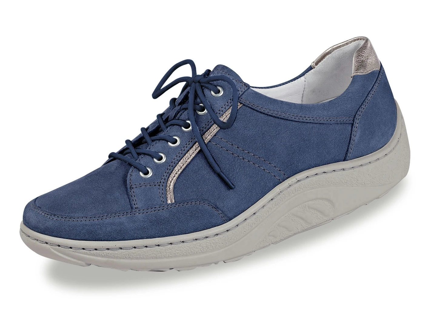 Waldläufer Schnürschuh mit Abrollfunktion in Jeansblau und in Schuhgröße 5.