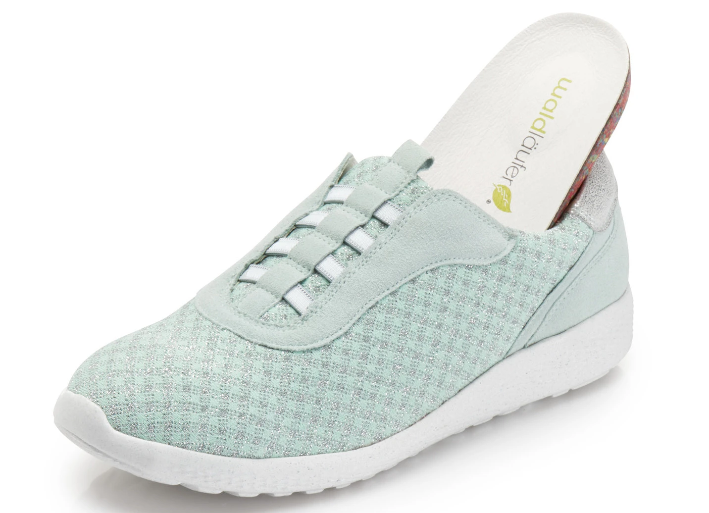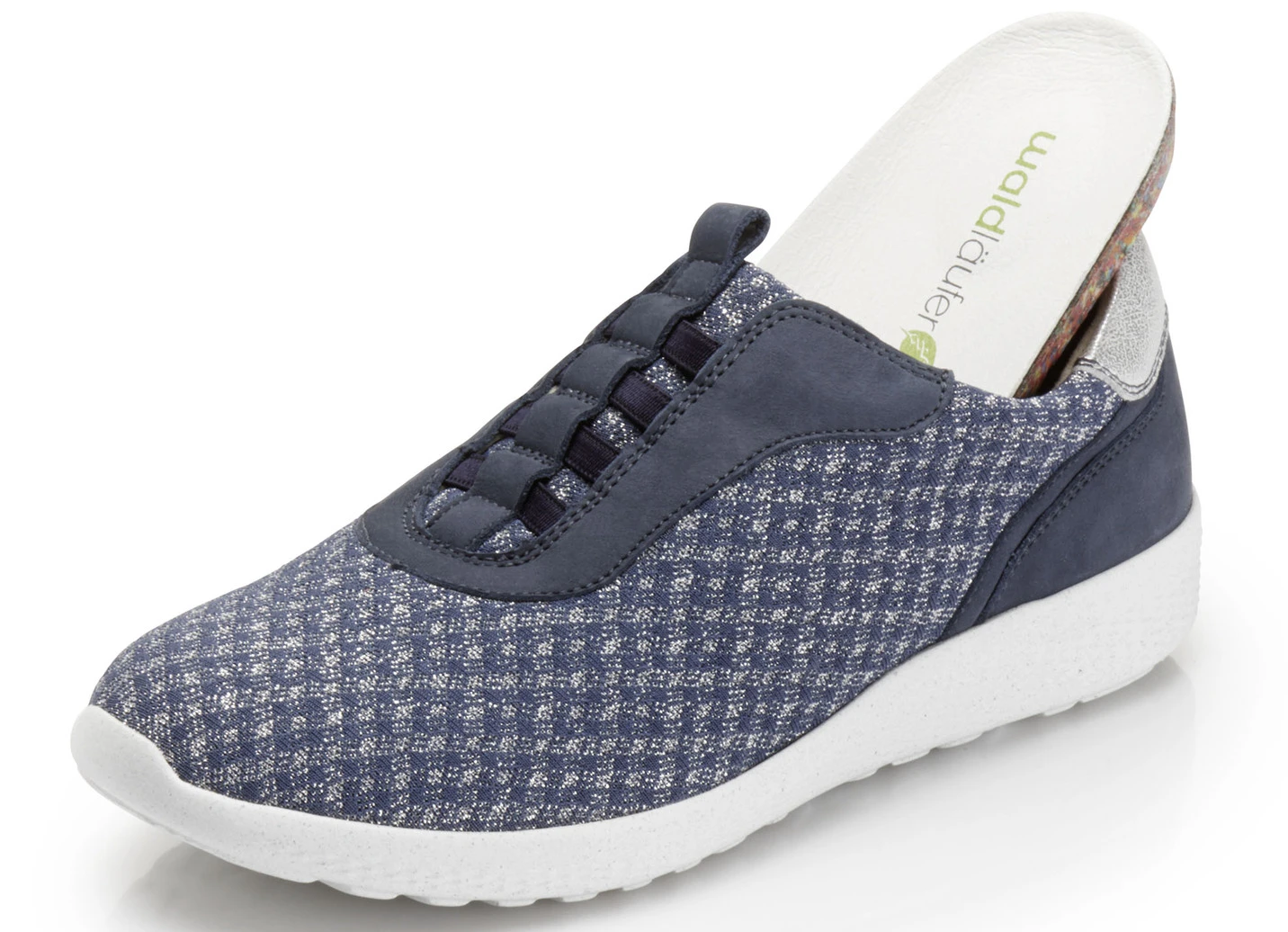 Waldläufer Slipper aus edel glitzerndem Textilmaterial in Schuhgröße 7 1/2 und in Blau.